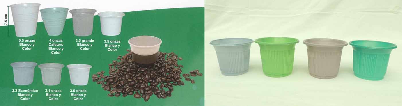 Se tiene una linea de vasos cafeteros en referencias desde 3.0 hasta 5.5 onzas en blanco y color.
